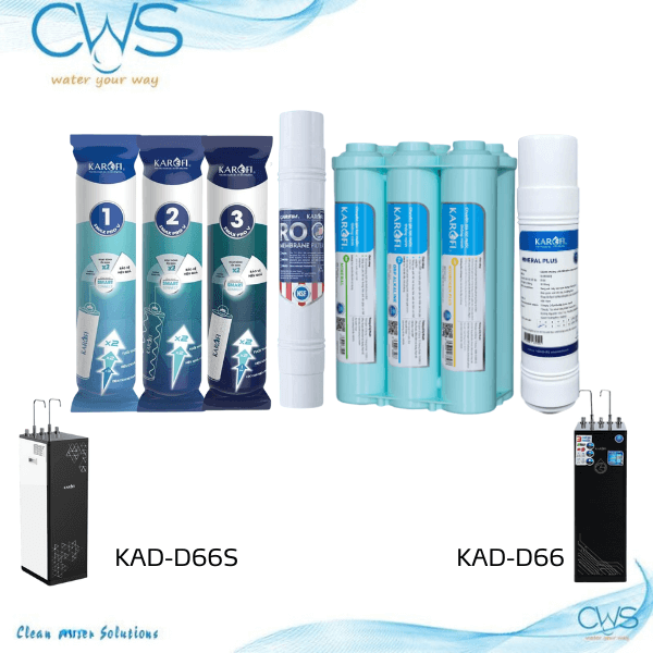 Máy lọc nước Karofi KAD-D66 và Máy lọc nước Karofi KAD-D66S được trang bị hệ thống lọc 11 lõi với màng RO Mỹ tiên tiến, giúp loại bỏ đến 99,99% vi khuẩn, virus, kim loại nặng, và clo dư trong nước. Tuy nhiên, theo thời gian sử dụng, khả năng hấp phụ của các lõi chức năng sẽ giảm dần, màng lọc RO cũng bị bão hòa và có nguy cơ tắc nghẽn, làm giảm khả năng loại bỏ tạp chất. Lúc này, vi sinh vật, kim loại nặng dễ dàng quay trở lại nguồn nước, gây nguy cơ ngộ độc hoặc mắc các bệnh về đường ruột, da liễu.