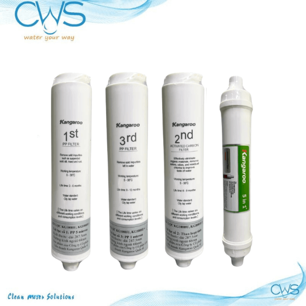 Bộ 5 lõi lọc nước Kangaroo KG100HU là phương án toàn diện. Nhằm giữ trọn vẹn nguồn nước sạch vượt trội. Loại bỏ hết cặn bẩn, mùi hôi và tạp chất có trong nguồn nước đầu vào. Bảo vệ sức khỏe cho bản thân và người thân trong gia đình. Với thiết kế dạng lõi đúc nguyên khối, công nghệ Plug and play tiện lợi. Giúp khách hàng dễ dàng thay thế tại nhà mà không gặp tí khó khăn nào. Nếu chiếc máy lọc nước Kangaroo của quý khách đã đến hạn thay thế lõi. Hãy cùng CWS khám phá ngay hệ thống lõi này trong bài viết dưới đây