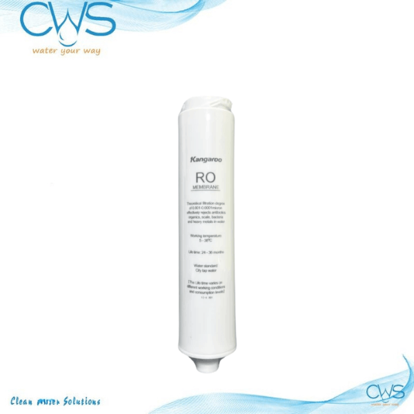 Màng RO là "trái tim" của hệ thống lọc nước, đóng vai trò quyết định chất lượng nước sau cùng. Lõi RO Membrane trong bộ 5 lõi lọc Kangaroo sử dụng công nghệ thẩm thấu ngược với kích thước khe lọc cực nhỏ, chỉ 0.0001 micron. Nhờ vậy, lõi có khả năng loại bỏ tới 99.9% vi khuẩn, virus, kim loại nặng, hóa chất và các tạp chất hòa tan. Với các dòng máy cao cấp của Kangaroo, màng RO Vortex độc quyền hoặc màng DOW từ Mỹ được trang bị để mang lại hiệu suất lọc vượt trội. Tuổi thọ của lõi RO khá dài, từ 24–36 tháng, giúp bạn yên tâm sử dụng trong thời gian dài.