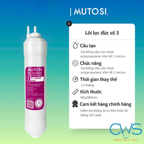 Việc thay lõi lọc đúng hạn không chỉ giúp máy hoạt động ổn định, tiết kiệm điện và nước mà còn đảm bảo chất lượng nước luôn trong lành, ngon tự nhiên mỗi ngày. Liên hệ ngay CWS để đặt mua bộ 8 lõi lọc Mutosi MP-350D-BKQ chính hãng, được hỗ trợ thay lõi nhanh chóng, đúng kỹ thuật và bảo hành chính hãng toàn quốc.