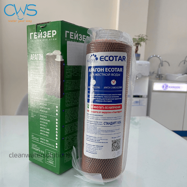 Lõi Aragon thế hệ mới nhất của Geyser Ecotar, tích hợp 4 cơ chế lọc: cơ học, trao đổi ion, hấp phụ và diệt khuẩn. Loại bỏ clo, kim loại nặng, vi sinh vật và cân bằng khoáng chất trong nước.