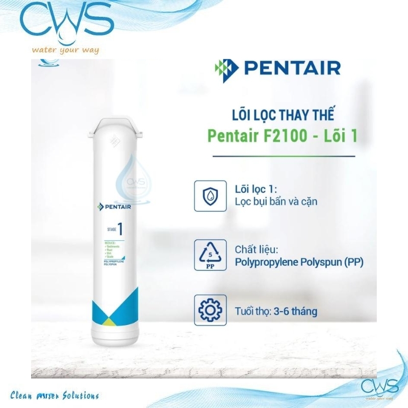 Công ty TNHH Clean Water Solutions tự hào là đơn vị phân phối cấp 1 các sản phẩm máy lọc nước và lõi lọc Pentair lọc nước, lõi lọc Pentair Bigblue thương mại,... CWS cam kết phân phối các sản phẩm chính hãng, hàng có chất lượng. Ngoài ra, chúng tôi có dịch vụ thay lõi tận nhà, phần mềm nhắc nhở chăm sóc thay lõi. Khách hàng không chỉ được mức giá tốt nhất mà còn là trải nghiệm dịch vụ chăm sóc chu đáo.