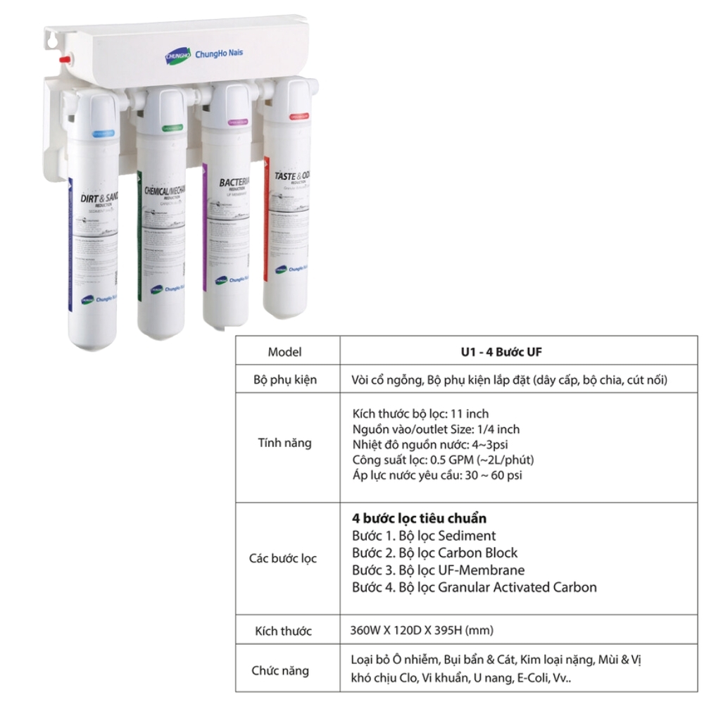 Thông số kỹ thuật của Máy lọc nước ChungHo FLUUX U1 - UF1
