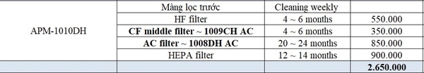 Giá màng lọc Coway APM-1010DH có thể dao động tùy thuộc vào loại màng và nhà cung cấp. Trung bình, giá của mỗi màng lọc như sau: