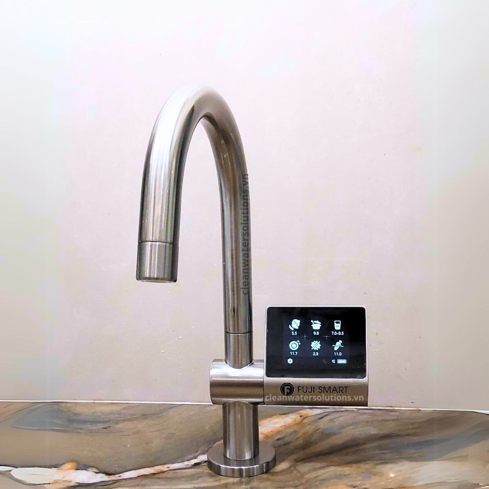 Fuji Smart JP900 được sản xuất với một lần nhấn (không cần nhấn thêm). Người dùng có thể yên tâm sử dụng và không cần phải nhớ loại nước nào được tạo ra ở vòi chính hay vòi phụ. JP900 được trang bị màn hình LCD rất lớn bên cạnh vòi. Có các biểu tượng trực quan và hiển thị toàn diện các thông số như: loại nước, độ pH, chỉ số chống oxy hóa ORP, lưu lượng nước, tuổi thọ lõi lọc và cường độ hydro...