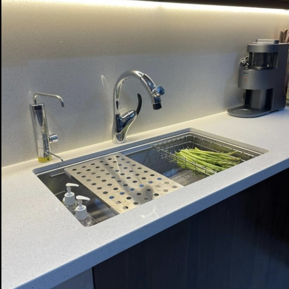 Máy lọc nước ion kiềm Mitsubishi Cleansui AL800 sở hữu thiết kế âm bồn cực ấn tượng giúp cho việc lắp đặt và bày trí máy luôn phù hợp dù bạn ở bất cứ không gian có diện tích ra sao. Bộ phận lọc nước và buồng điện giải nằm hoàn toàn dưới bồn rửa, chỉ có bộ phận điều khiển nhỏ gọn đặt bên trên với bảng điều khiển nằm trực diện giúp cho việc chọn nước ngay trên thiết bị lọc cực đơn giản và dễ dàng.