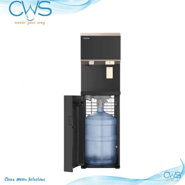 Một trong những nỗi lo lớn nhất của người dùng khi sử dụng cây nước nóng lạnh truyền thống là việc phải khuân vác bình nước 20L nặng nề lên đỉnh máy. Máy làm nước nóng lạnh Toshiba RWF-IW2469BVN(K) đã hoàn toàn xóa bỏ rào cản này bằng thiết kế bình nước gắn dưới. Người dùng chỉ cần mở ngăn chứa phía dưới, kết nối vòi hút và đẩy nhẹ bình nước vào trong. Cơ chế này không chỉ giúp thay nước nhẹ nhàng mà còn che giấu bình nước một cách tinh tế, giúp máy trông gọn gàng và sang trọng hơn hẳn các model cũ.