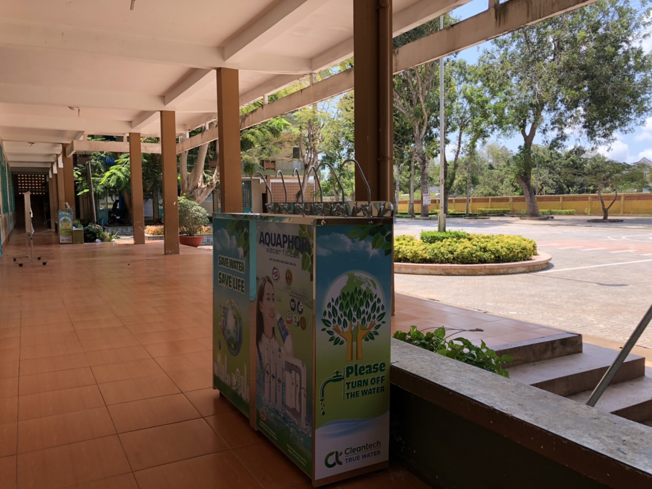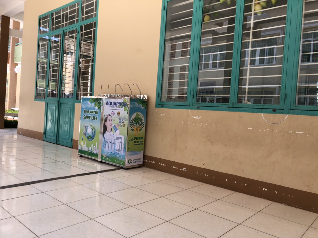 Máy Lọc Nước Nóng Lạnh Aquaphor tủ inox 4 vòi được lắp đặt tại trường học (ảnh thực tế)