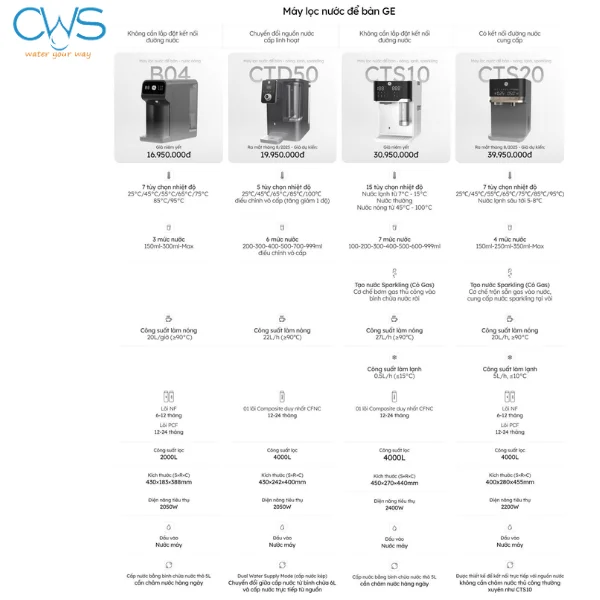 Clean Water Solutions (CWS) tự hào là đơn vị phân phối chính hãng máy lọc nước GE B04 tại Việt Nam. Với đội ngũ tư vấn chuyên sâu và dịch vụ hậu mãi tận tâm, CWS cam kết mang đến giải pháp nước sạch thông minh cho hàng ngàn gia đình Việt.