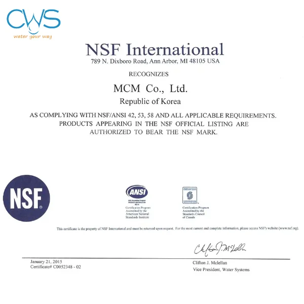 Chứng nhận NSF cho các dòng máy lọc nước Chungho