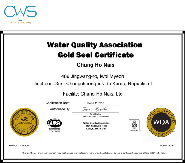 Chứng nhận WQA cho các dòng máy lọc nước Chungho
