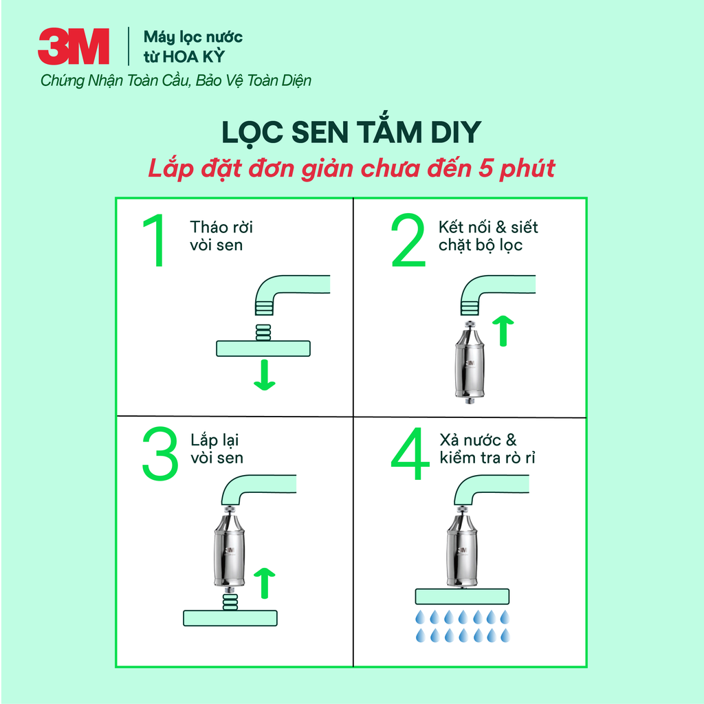 Thiết Bị Lọc Sen Tắm 3M SFKC01-CN1 cho ra mắt để giải quyết nhu cầu này. Nước sau lọc của 3M giúp loại bỏ các tác nhân gây hại phổ biến trong nước máy, cho ra nguồn nước sạch bảo vệ da và tóc.