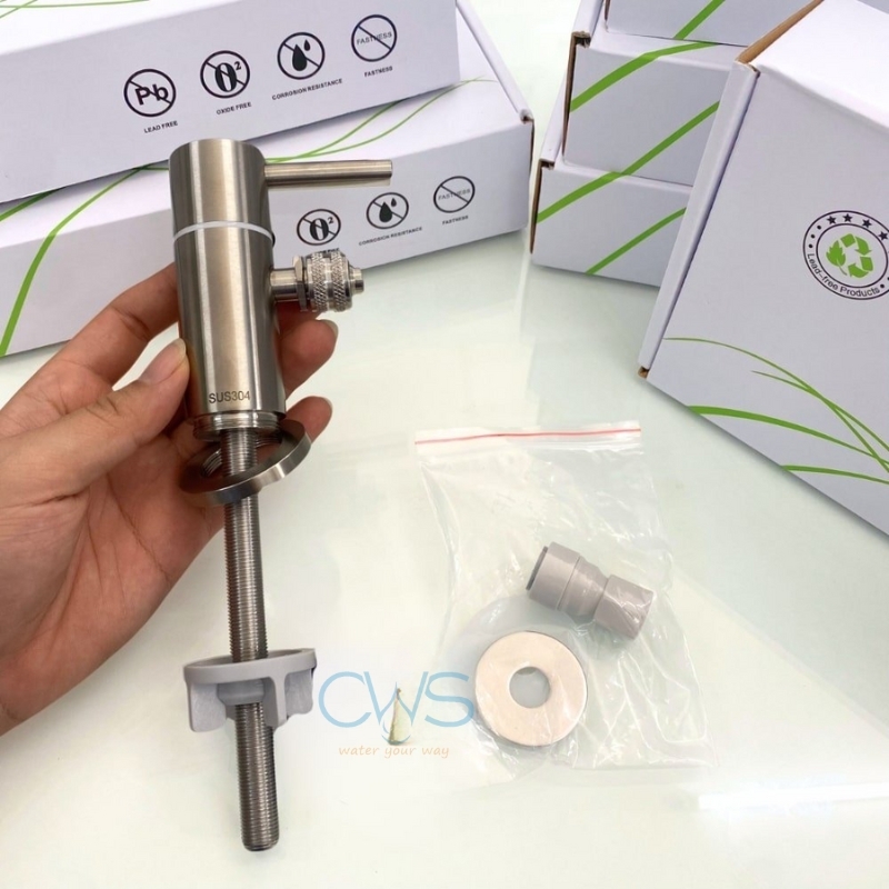 - Vòi inox 304 chuyên dùng cho máy lọc nước điện giải ion kiềm có vòi nước ra ở trên đầu.
